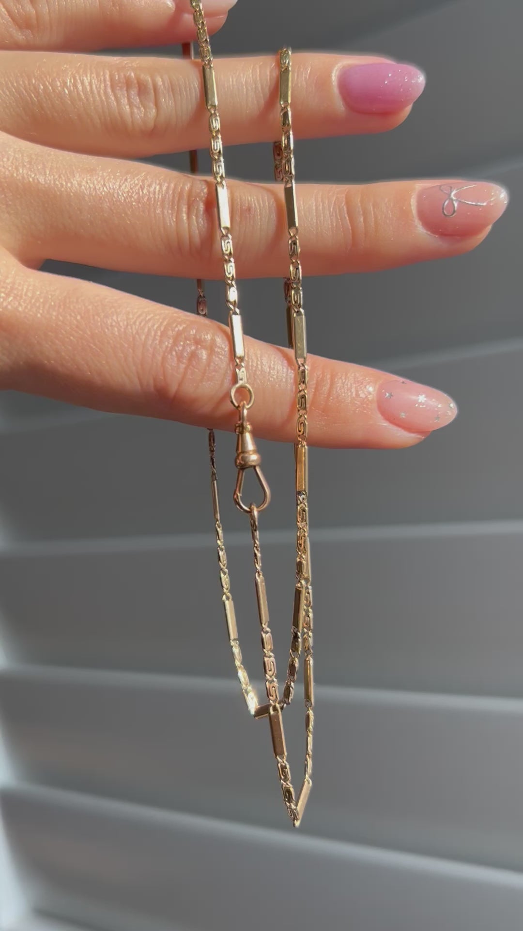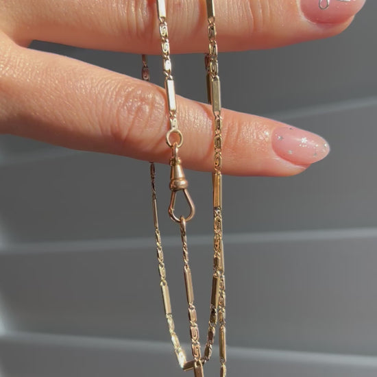 Antique 14k Rosy Yellow Gold Bar and Scroll Watch Chain with A Dog Clip