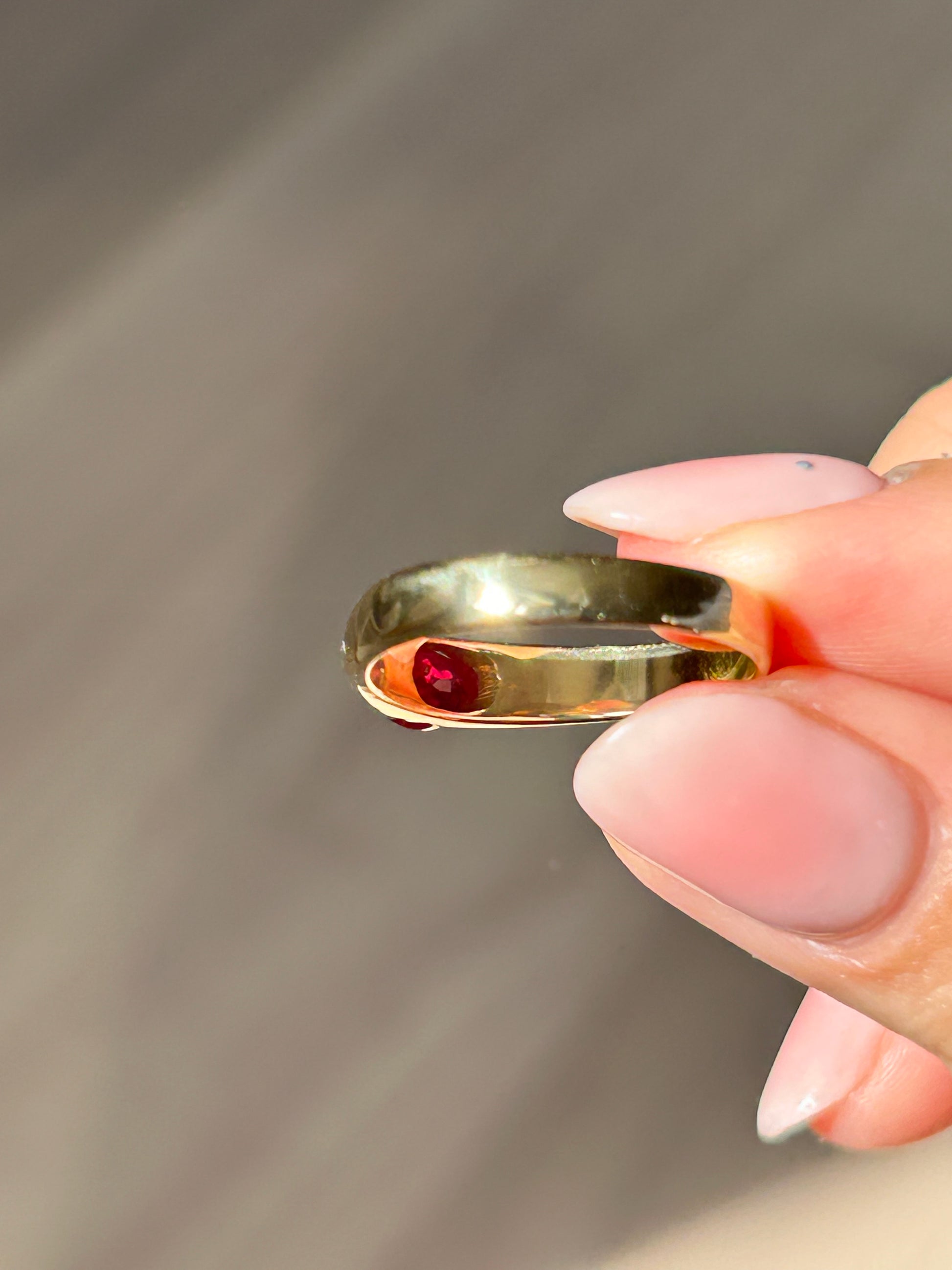 Vintage 18k East West Oval Ruby and Diamond Ring: US Size 6.5