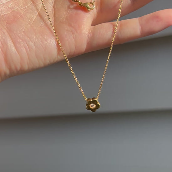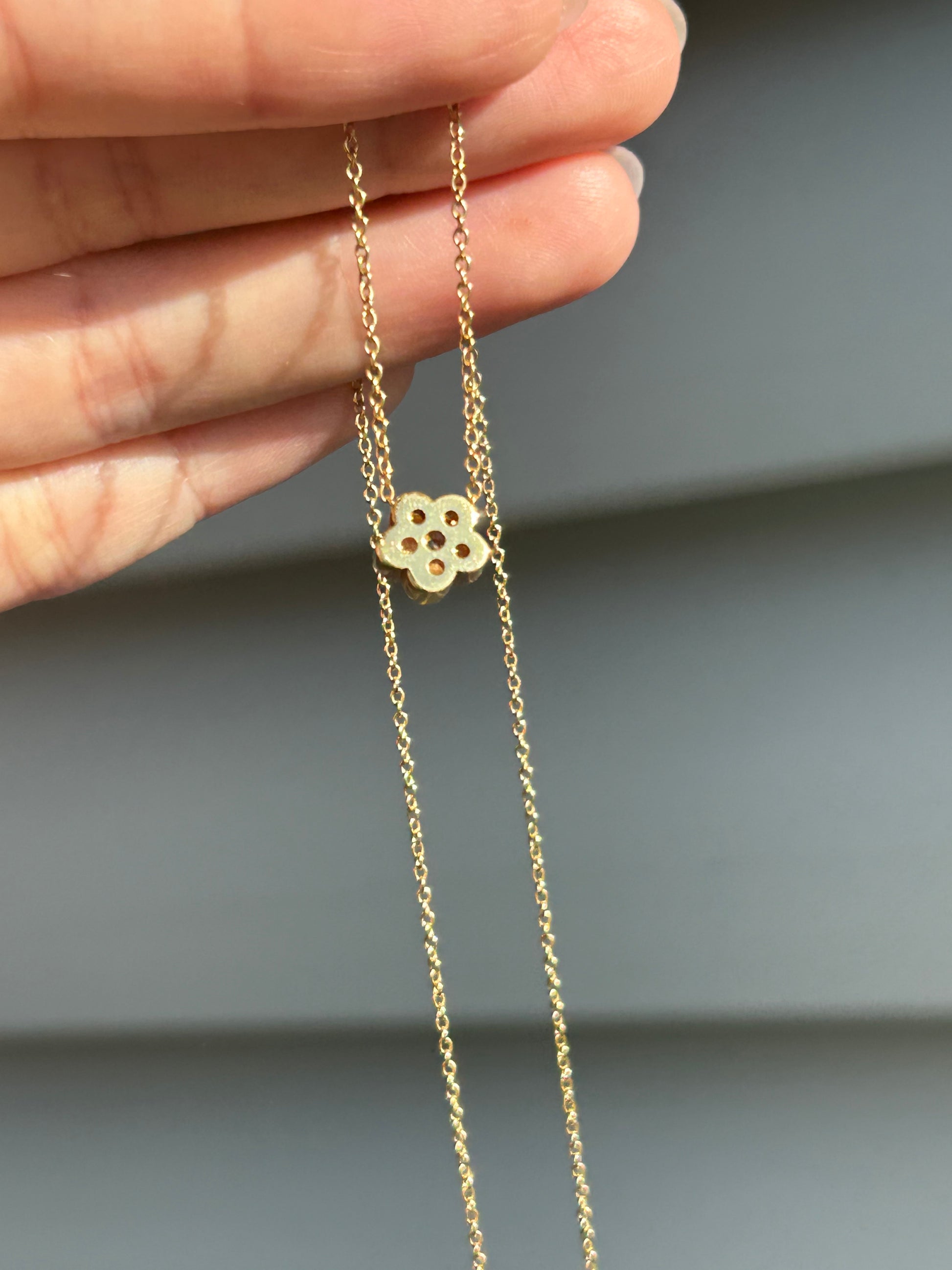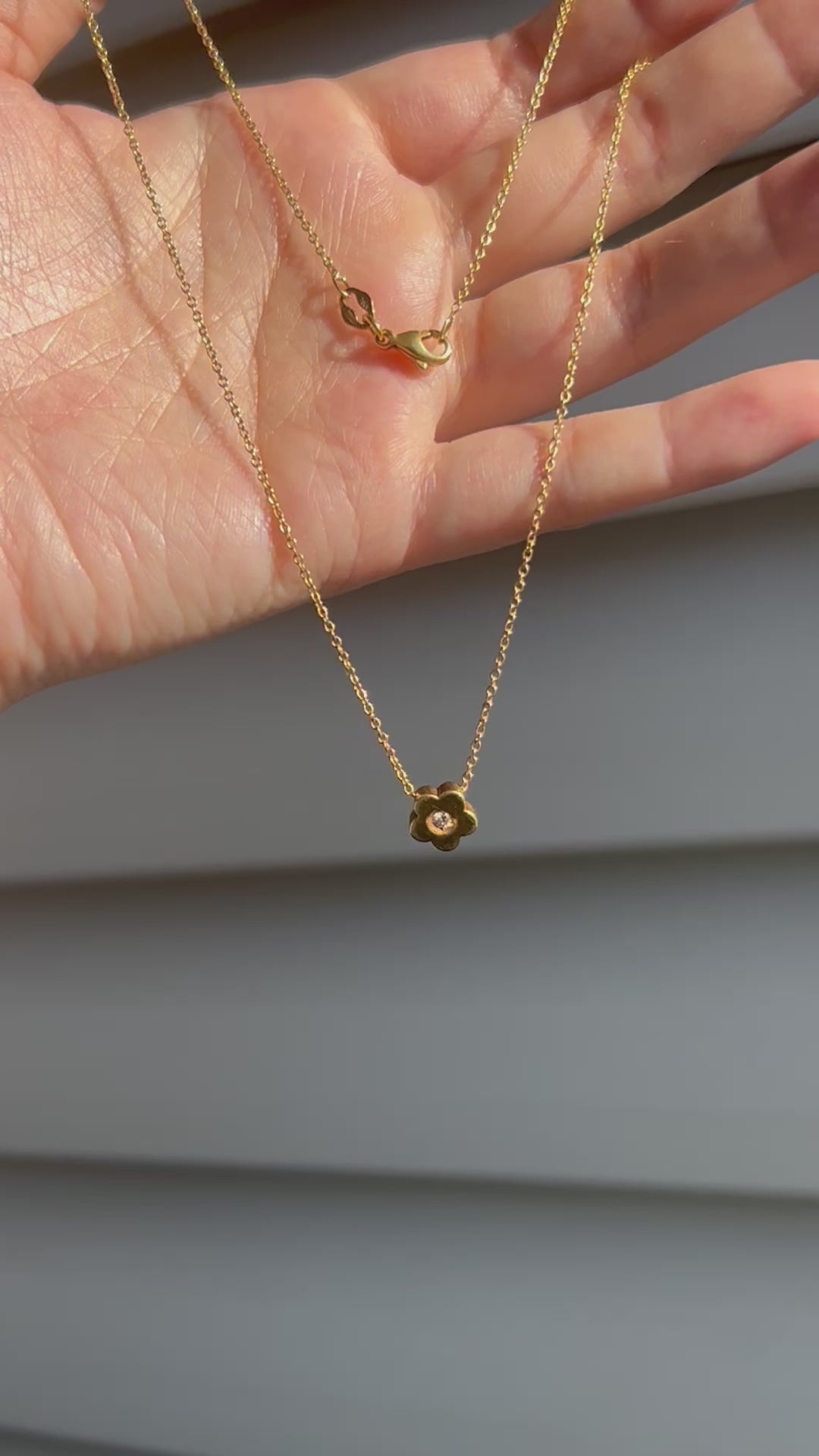 Dainty Vintage 18k Flower Pendant Chain: Diamond Center