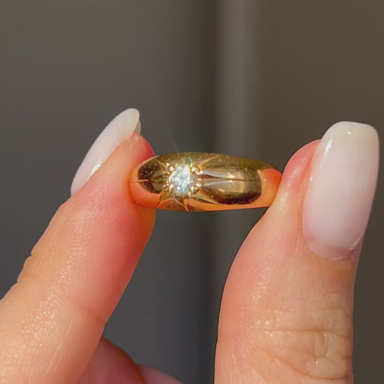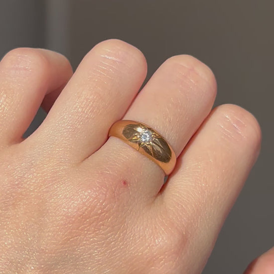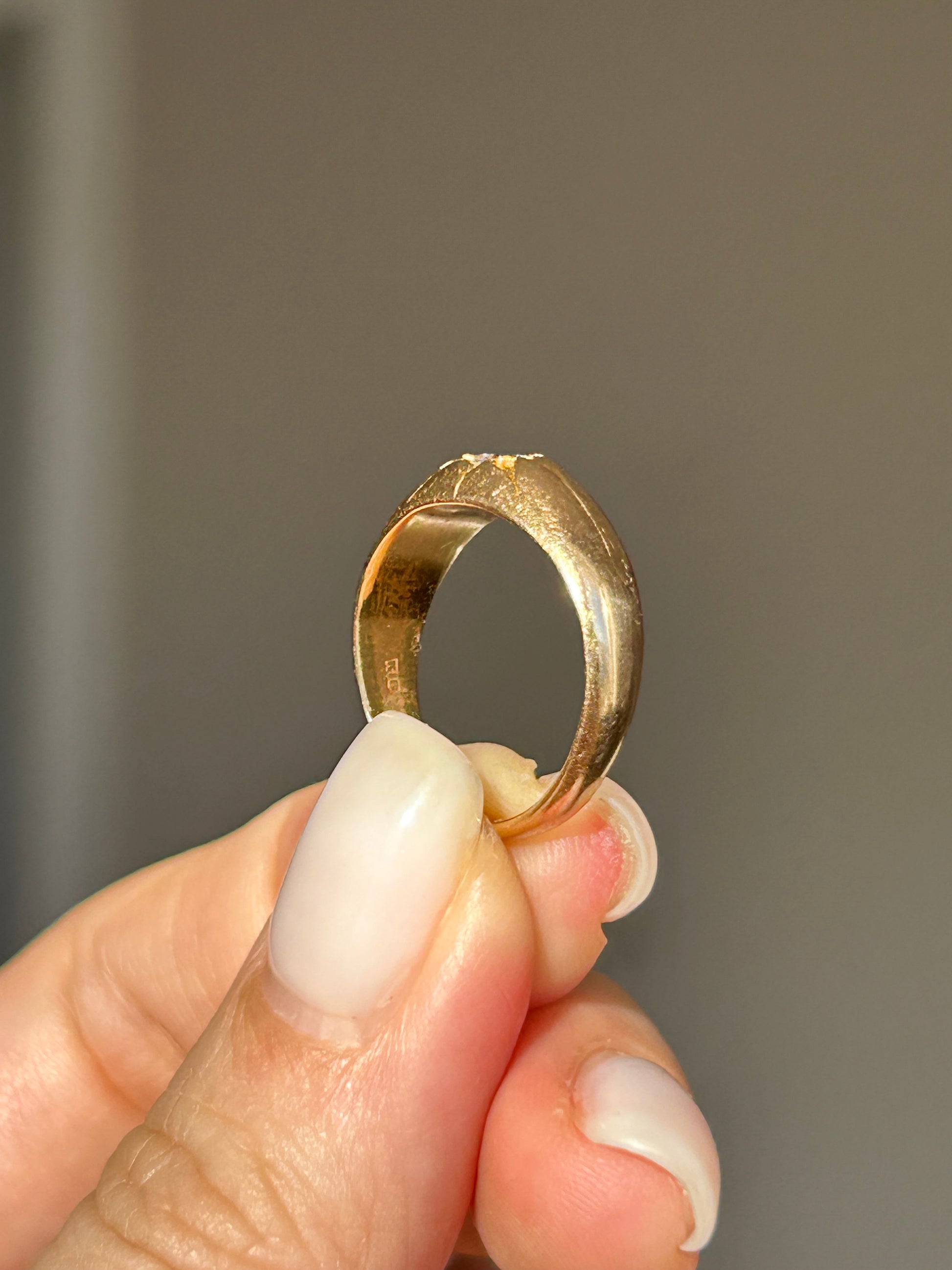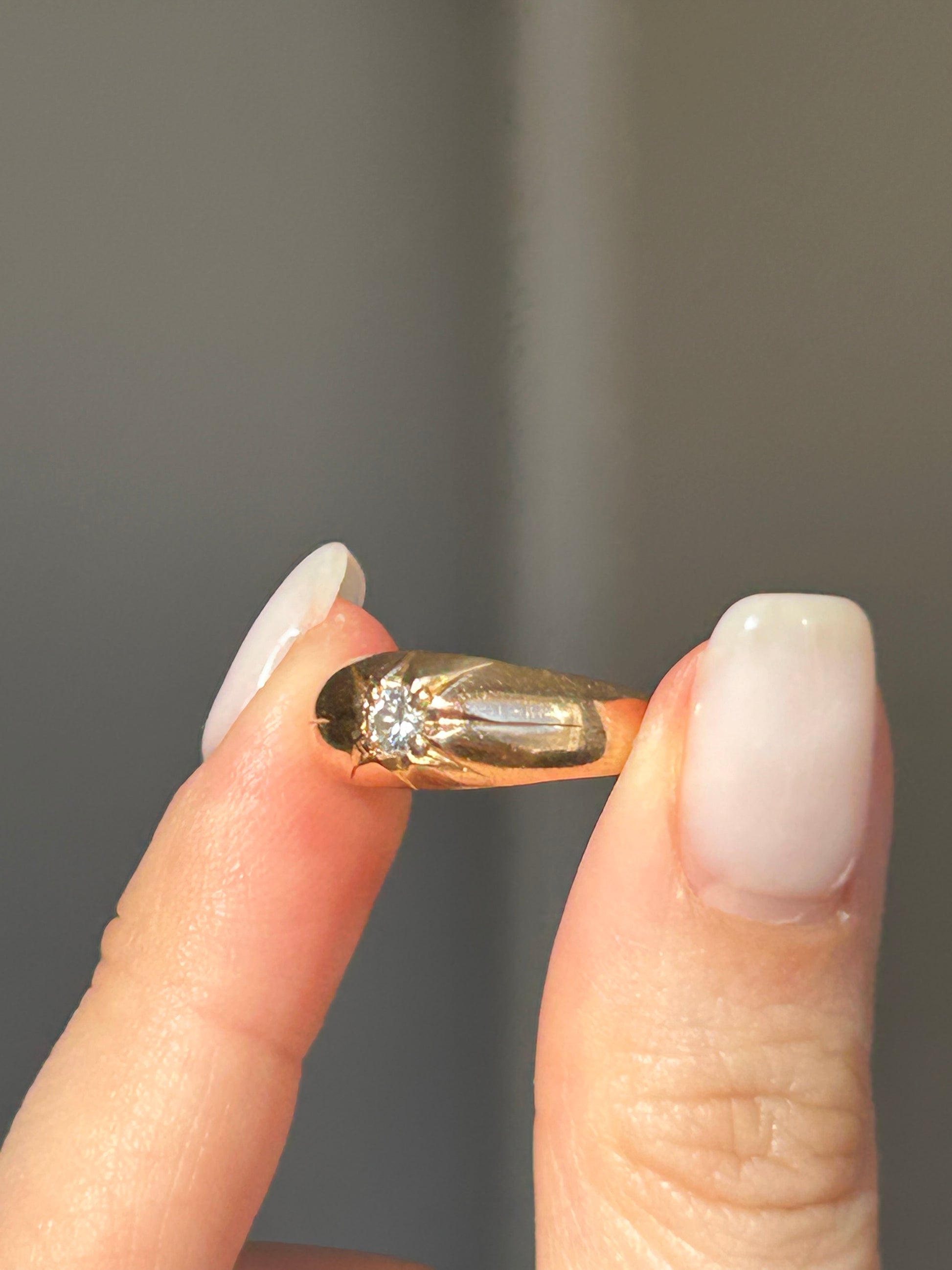 Classic vintage 18k gold diamond gypsy ring circa 1950’s-60’s. Solid back and so comfortable to wear.