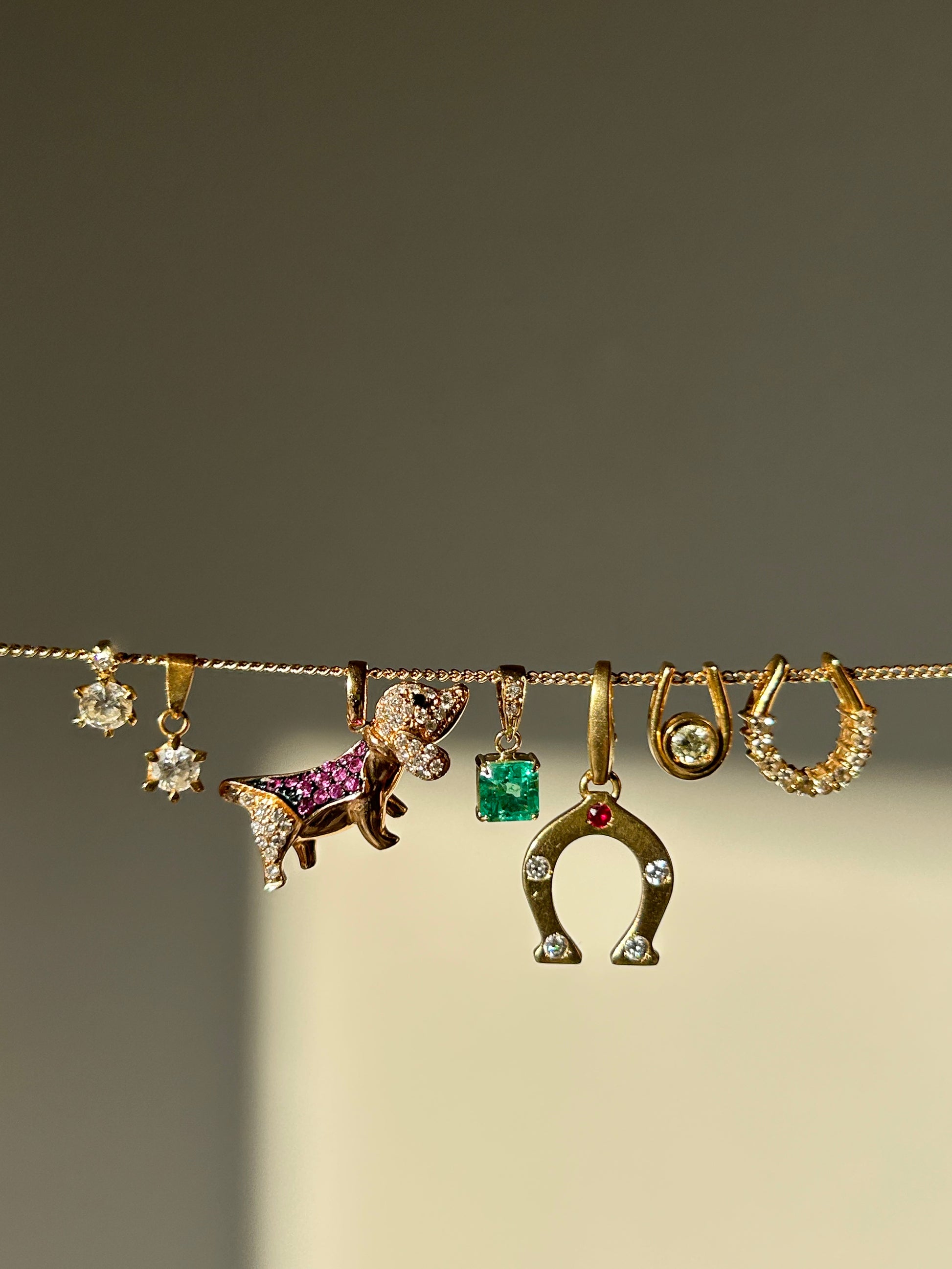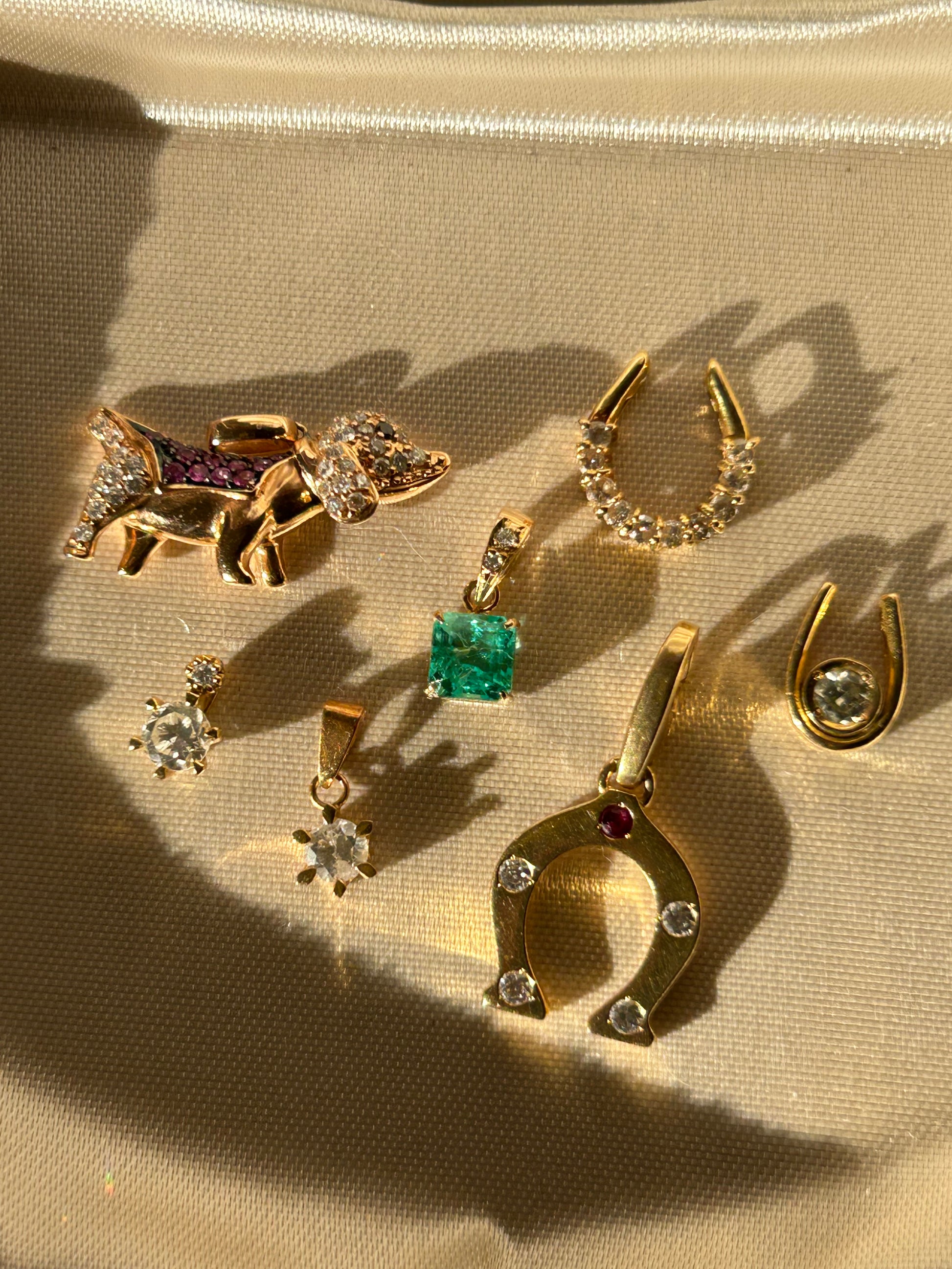 Vintage 18k Gold Center Yellow Diamond Horseshoe Pendant Charm
