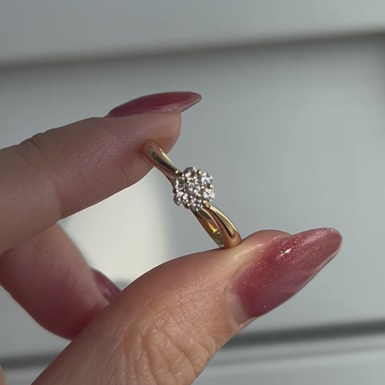 Classic vintage daisy ring with the sparkliest white diamonds. Perfect for every occasion.