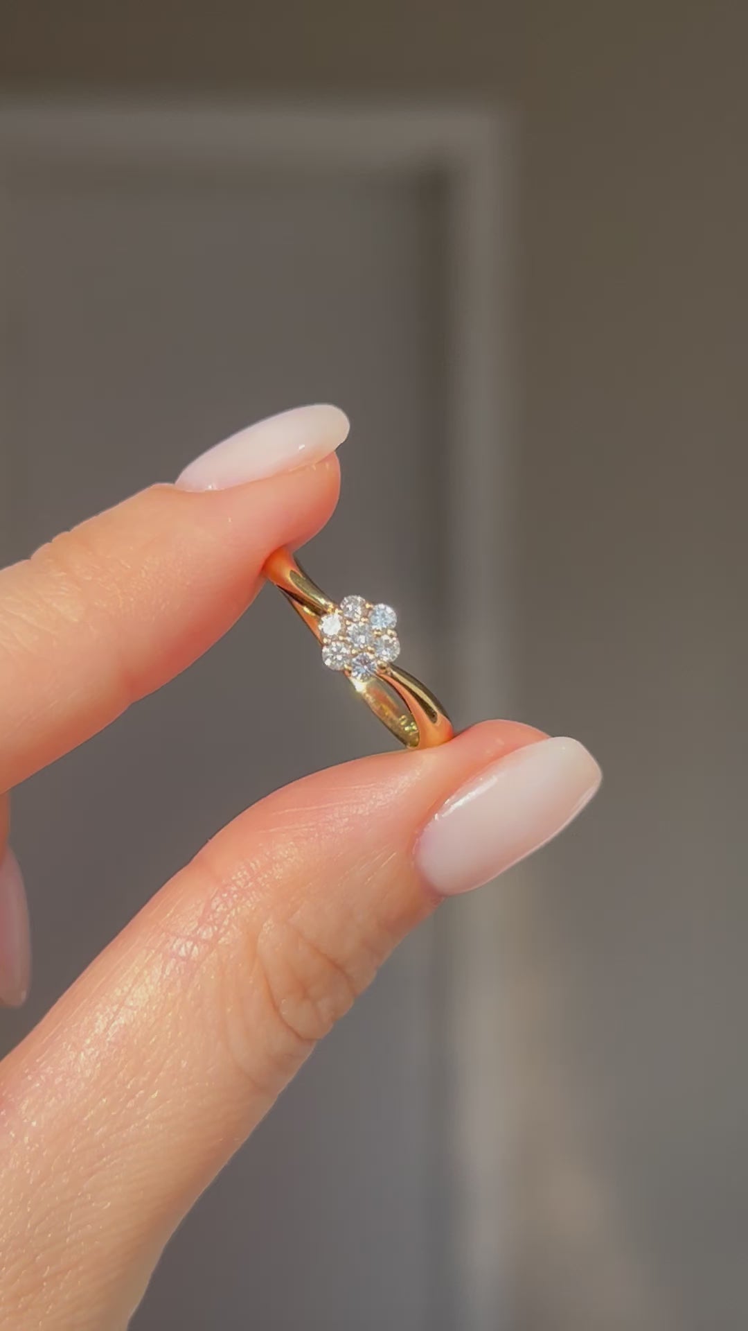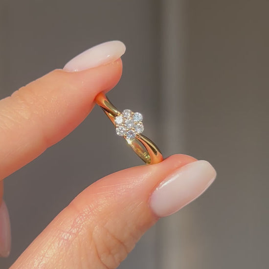 Vintage 18k Gold Diamond Flower Daisy Ring