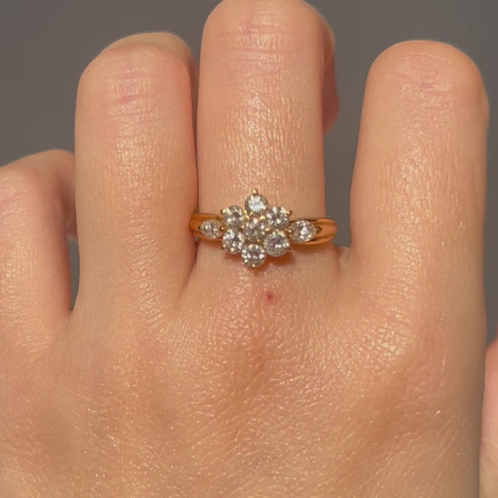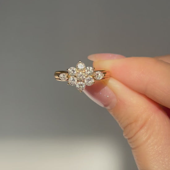 Vintage 18k Gold Diamond Flower Ring: 1 ct, US Size 7