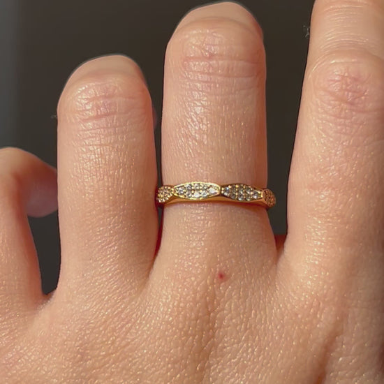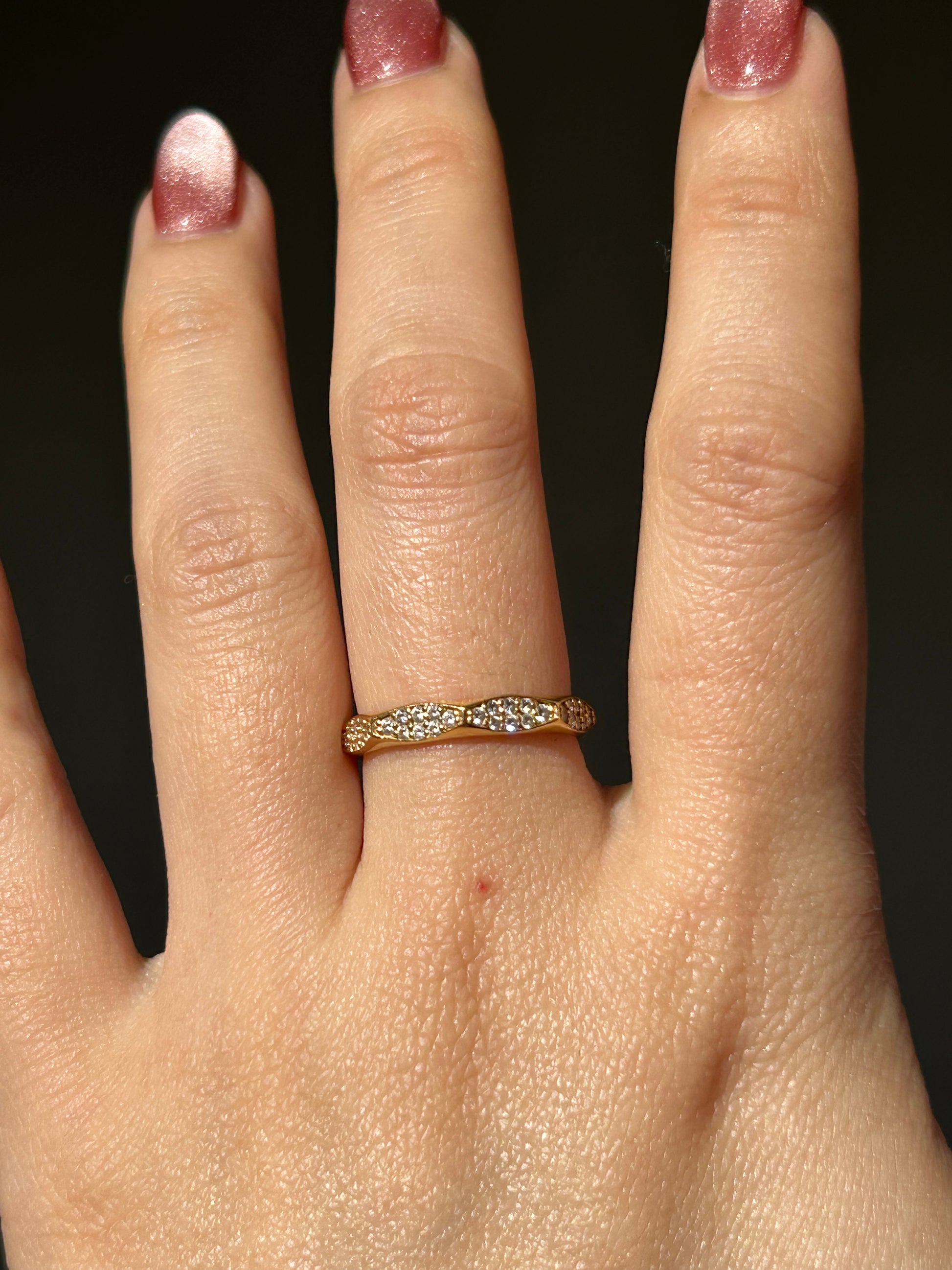 Unique vintage scalloped pattern diamond stacking ring. A fun way to add some pattern to your stack.