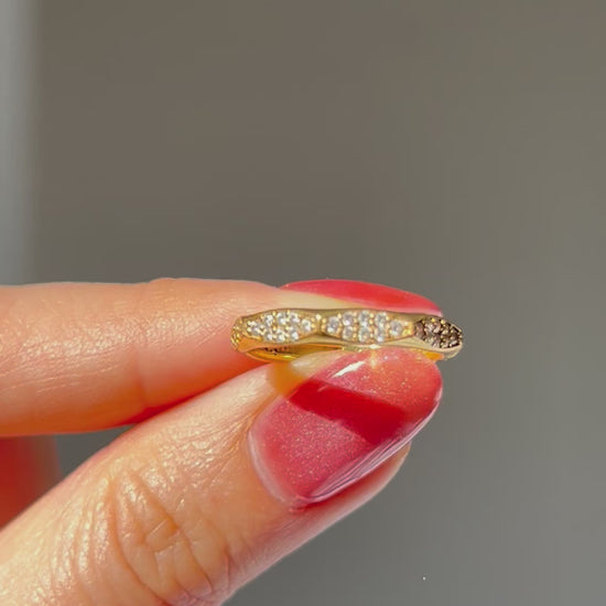 Vintage 18k Gold Diamond Scalloped Pattern Stacking Ring