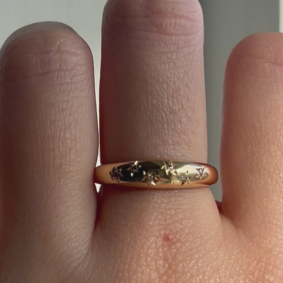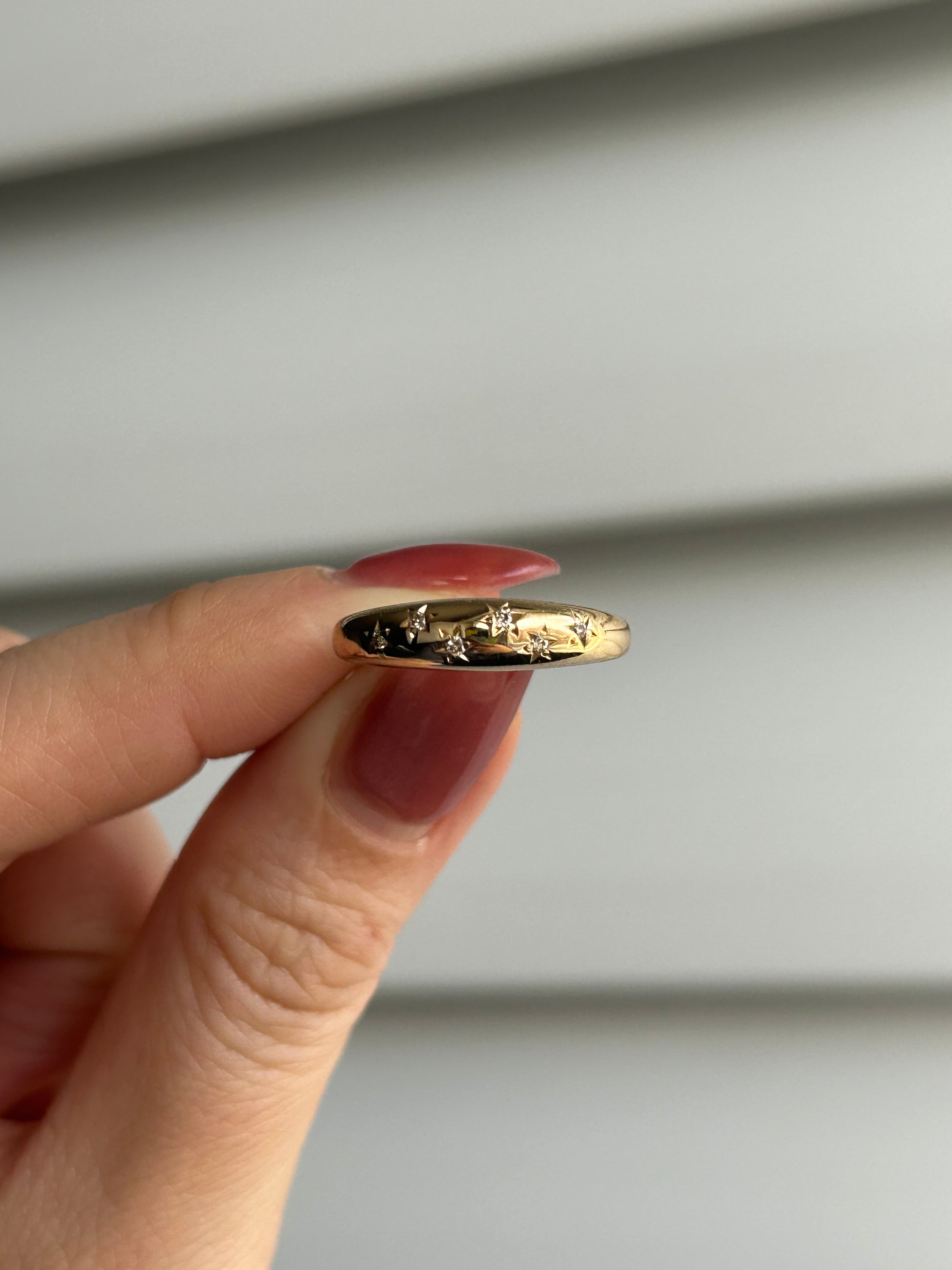 Vintage 18k Gold Diamond Starburst Thin Dome Ring