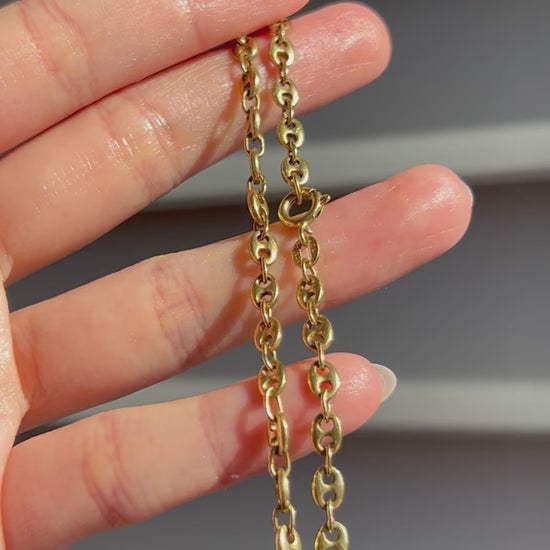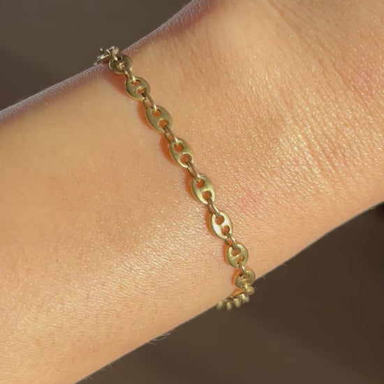 Gorgeous vintage puffy mariner/gucci link bracelet with the best patina. The links are solid and weighty. Perfect addition to your wrist stack.