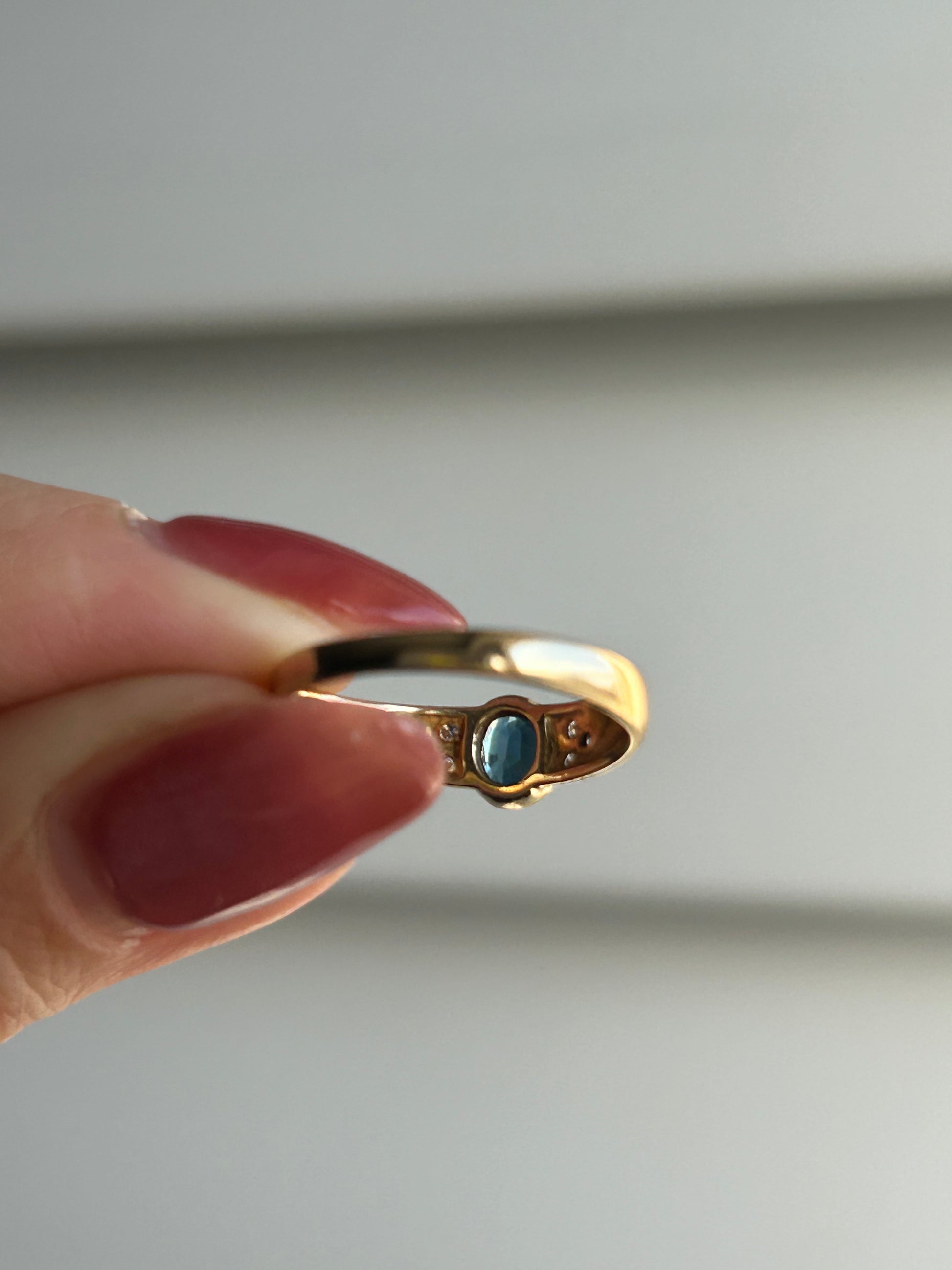 18k yellow gold. Sapphire 0.4ct. Diamonds totaling 0.05 ct. Size 4.75. 1.8g.