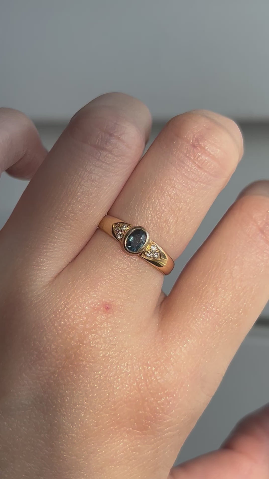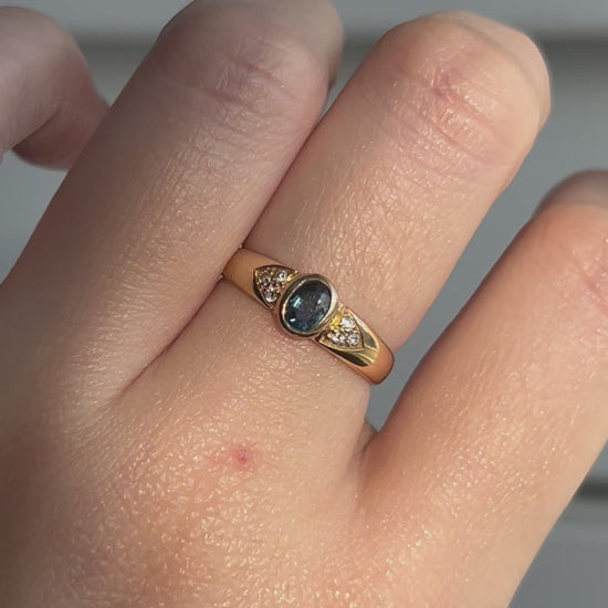 Vintage 18k Gold Sapphire and Diamonds Bezel Set Ring