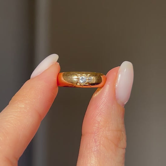 Classic vintage 18k gold diamond gypsy ring circa 1950’s-60’s. Solid back and so comfortable to wear.