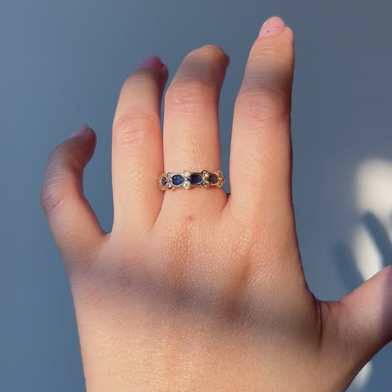 Vintage 18k Oval Sapphire and Diamond Stacking Band: US Size 5.75