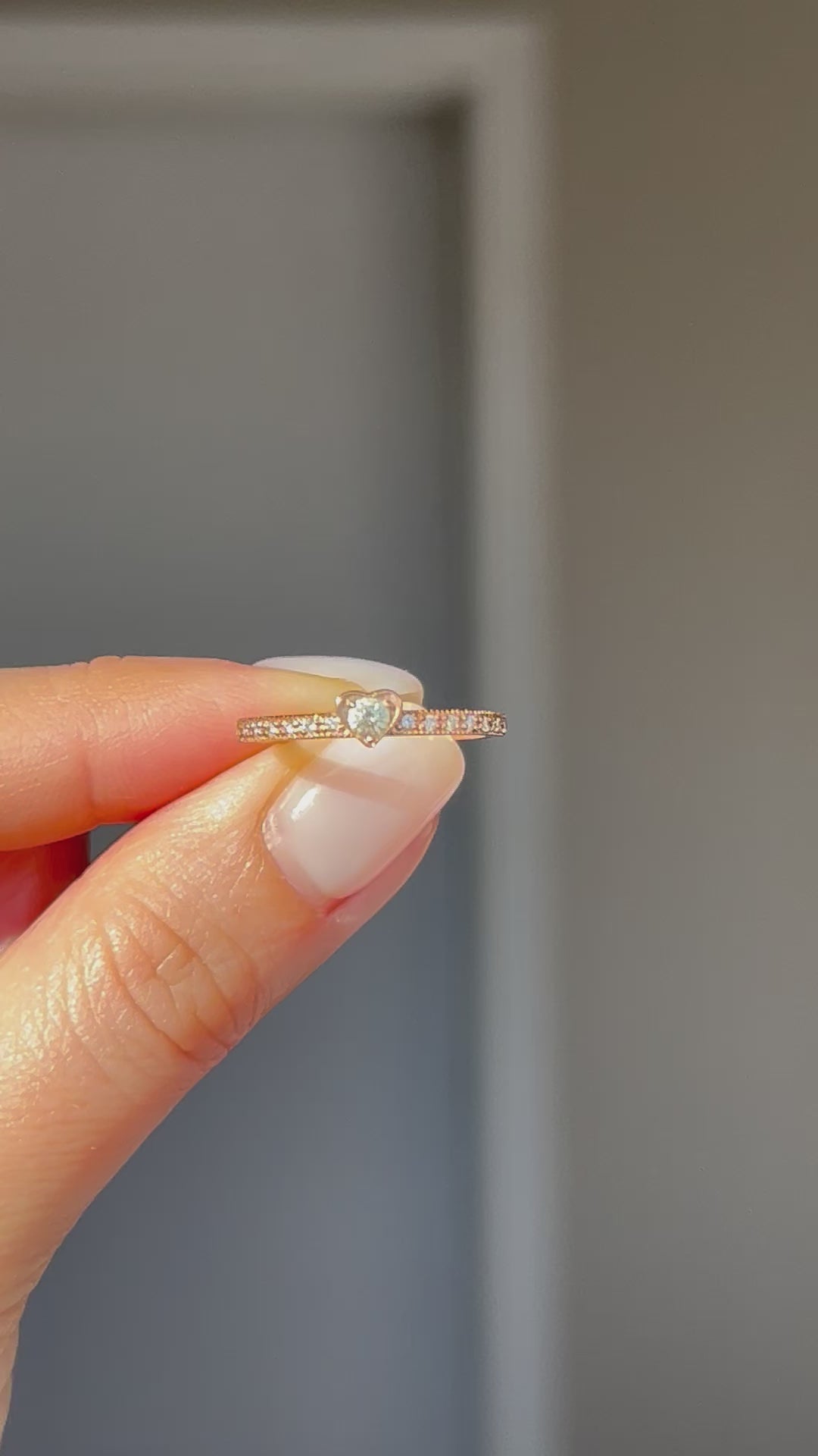 Vintage 18k Pink Gold Diamond Heart Dainty Stacking Band