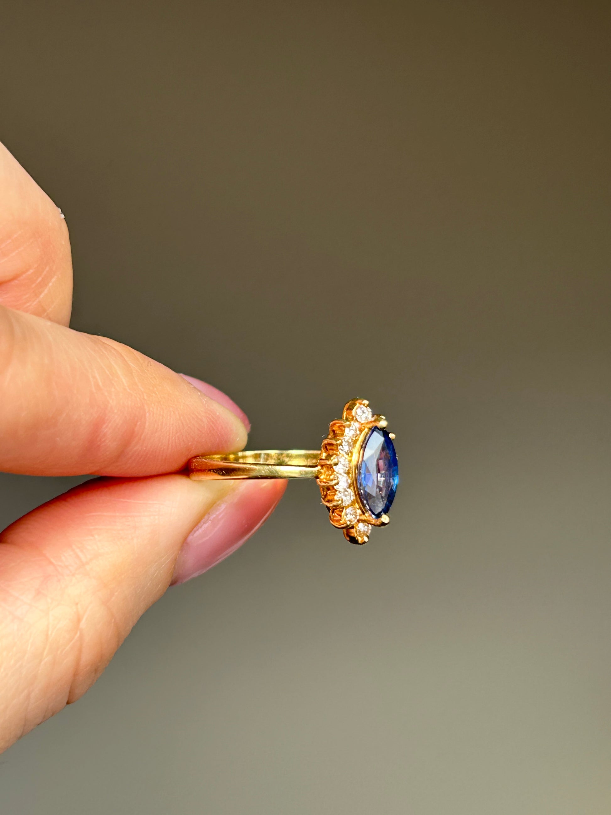 Vintage 18k Sapphire Marquise Diamond Halo Ring