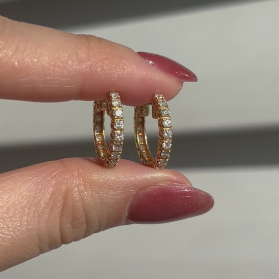 Classic vintage 18k gold small diamond eternity hoops. Perfect to wear everyday for every occasion.