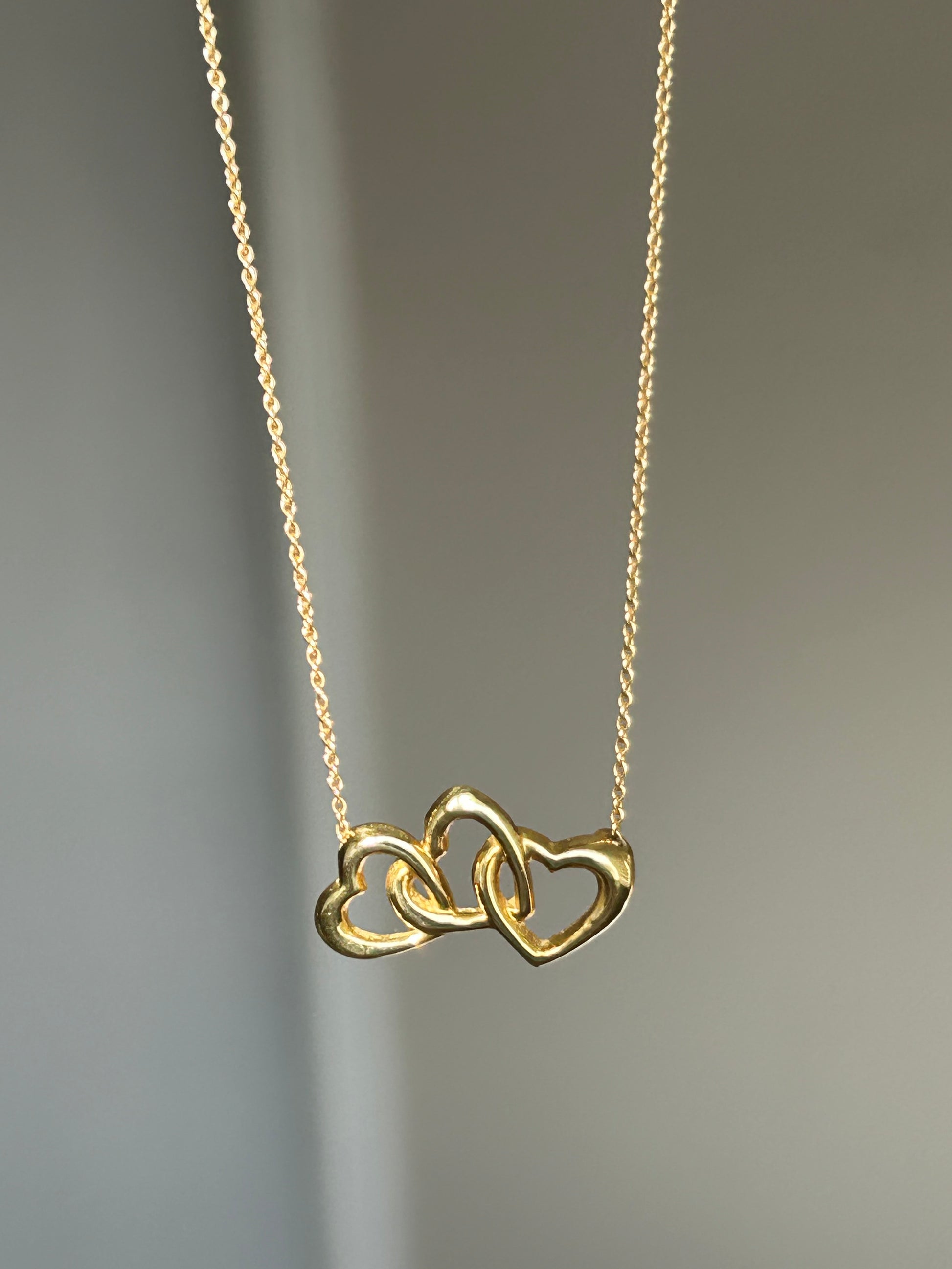 Vintage 18k Gold Tiffany & Co Three Interlocking Hearts Necklace