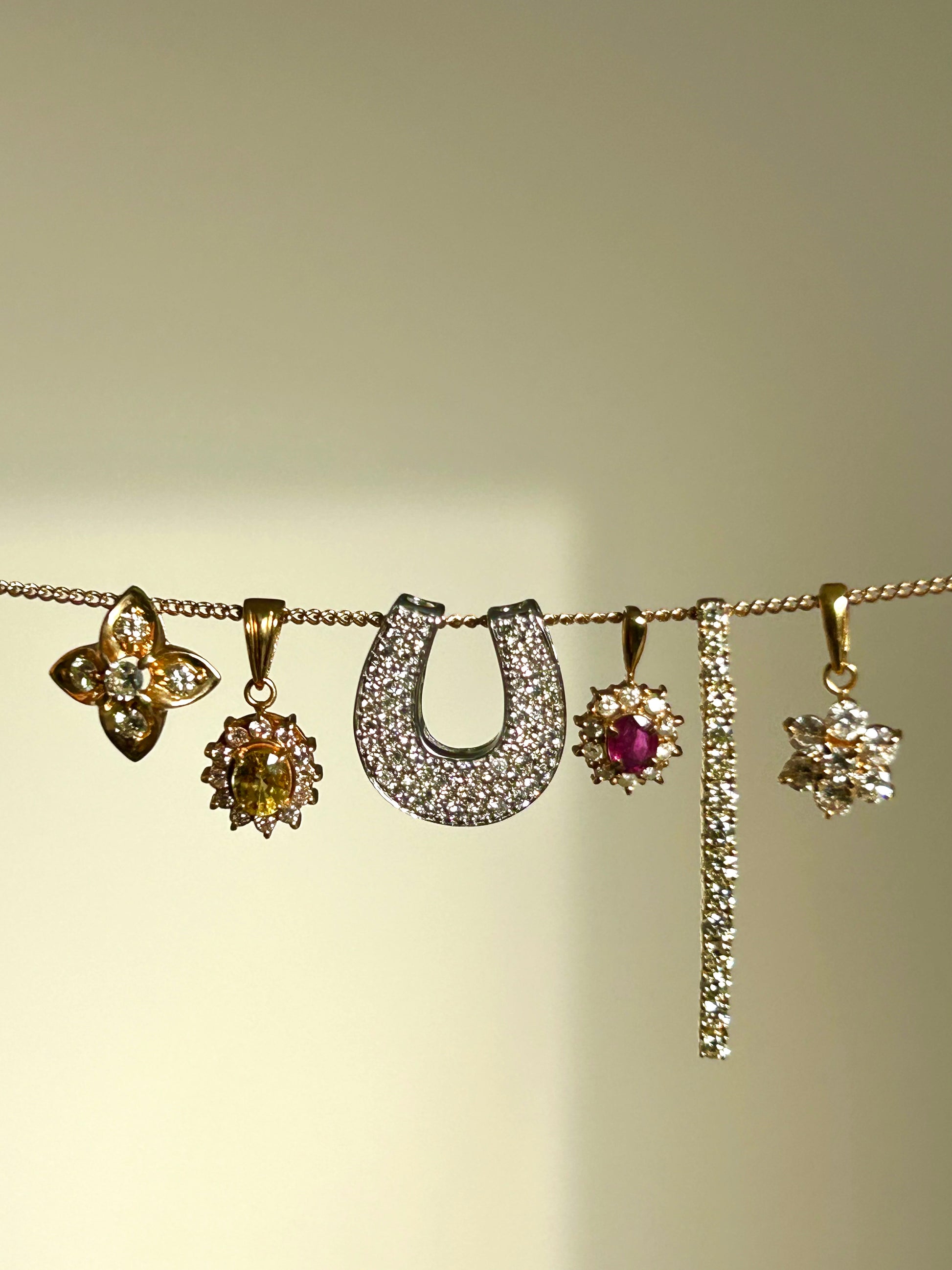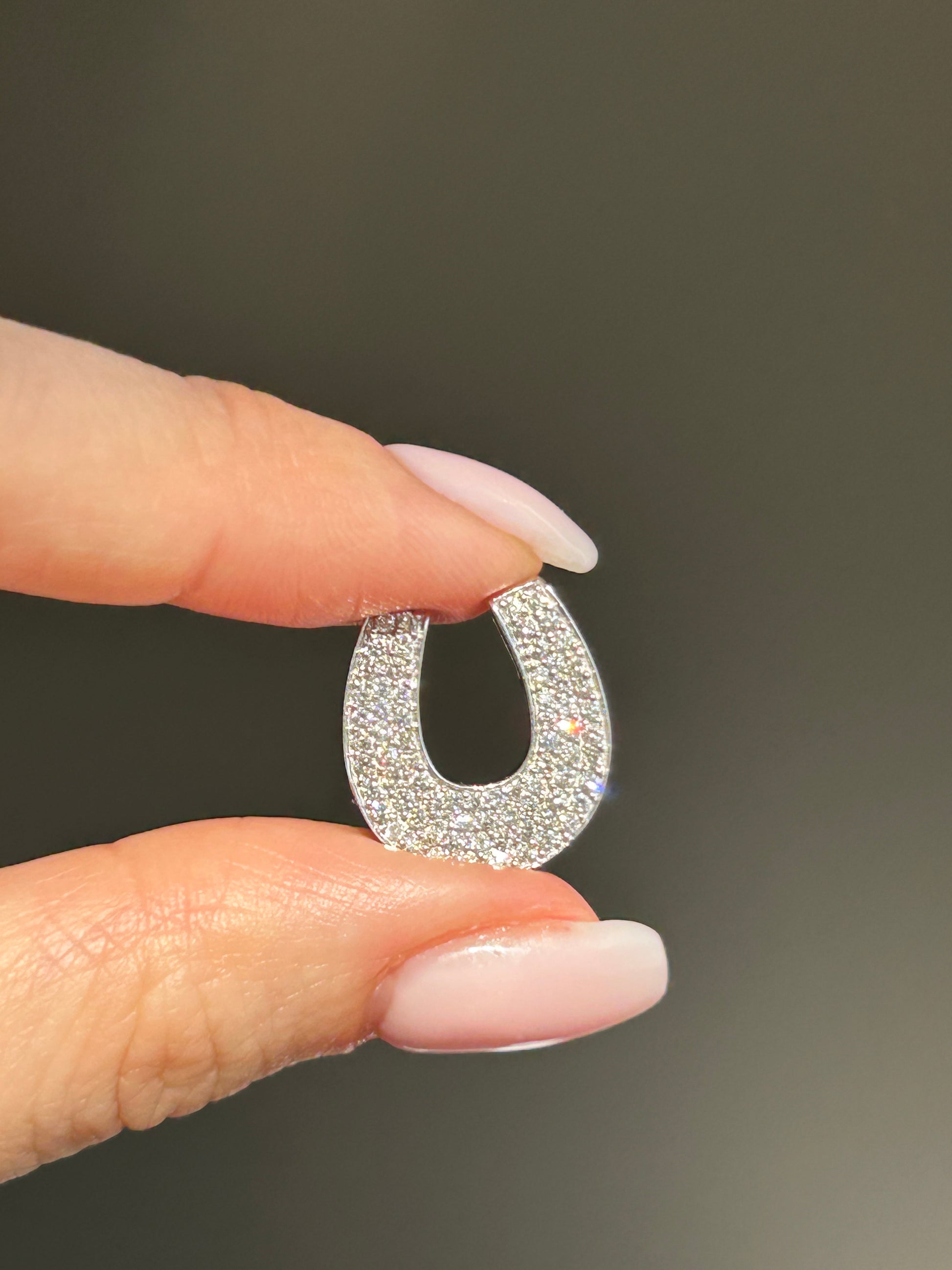 Vintage 18K White Gold Pave Diamond Horseshoe Pendant