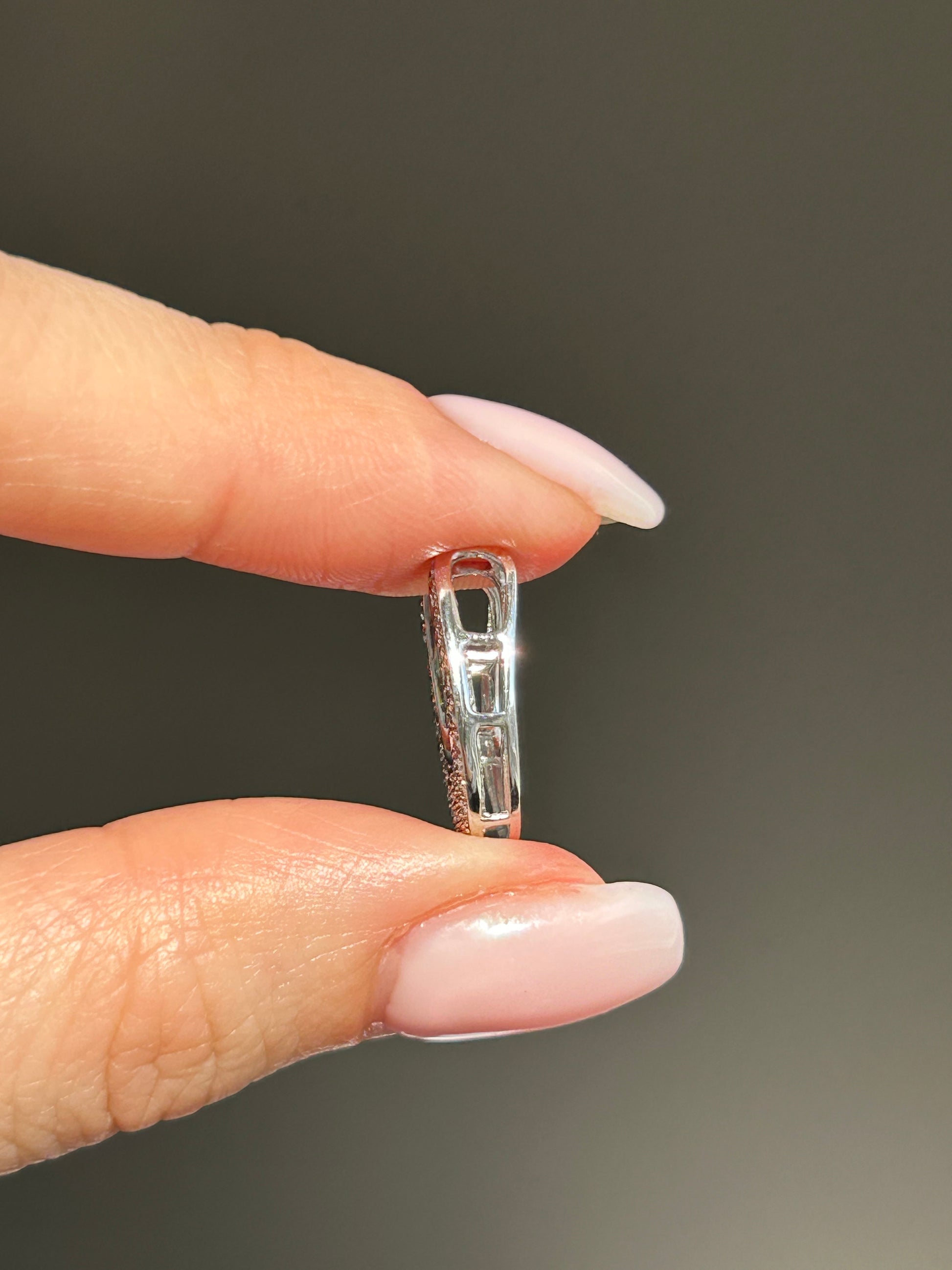 18k white gold. Diamonds ~ 0.5 ctw. 18 mm height, 15 mm width. 2.4g. Hidden bail.