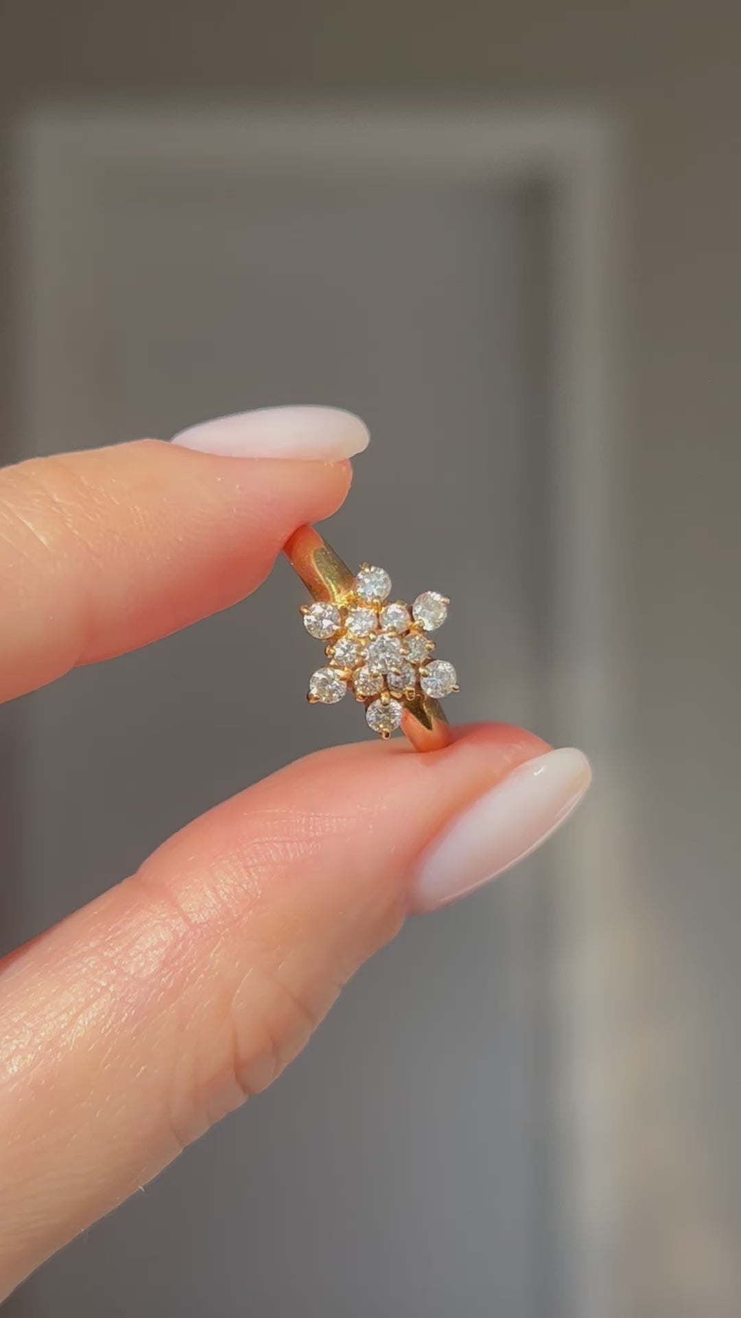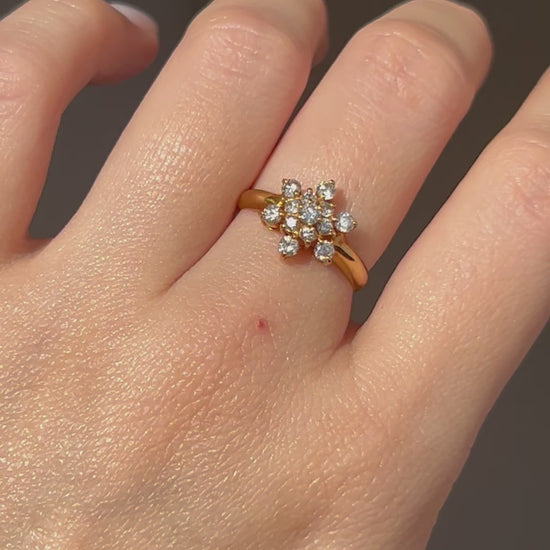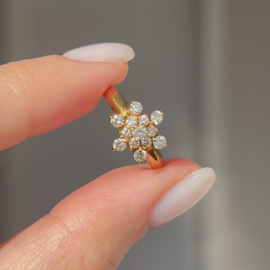 Vintage 18k Yellow Gold Diamond Snowflake Ring: US Size 5, 0.5 ct Diamonds