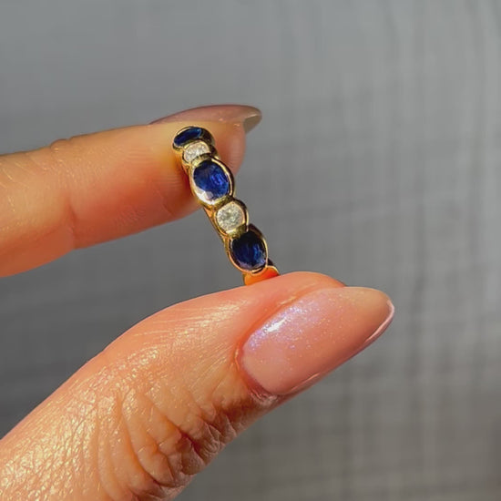 Vintage Oval Sapphire and Round Diamond Band: US Size 7